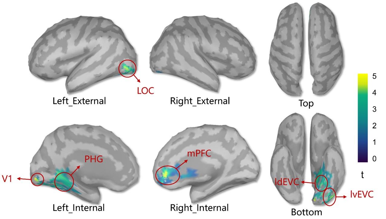 2. 揭示了深层神经机制:利用脑磁图(MEG)技术,发现VR培训诱发了独特的早期情绪—情境编码机制,涉及视觉皮层(V1/LOC)、内侧前额叶(mPFC)和海马旁回(PHG)的协同激活。