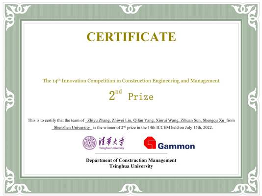 第14届建设工程与管理创新竞赛(ICCEM14)决赛于2022年7月15日在线举办。该赛事由香港金门建筑有限公司赞助、清华大学建设管理系主办、清华大学土木工程系暨建设管理系研究生会承办。
