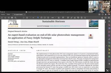 Daniel Oteng博士汇报《An expert-based evaluation on end-of-life solar photovoltaic management: An application of Fuzzy Delphi Technique》。 |