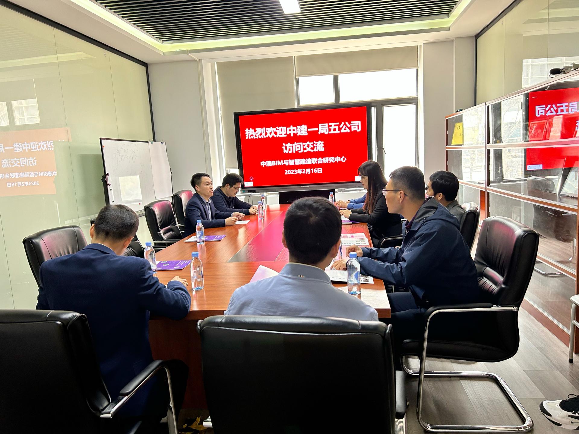 2023年2月16日下午,中建一局五公司基础设施事业部总工王维东、华南分公司总工李艳秋、科技质量部经理史雄刚等一行莅临中澳BIM与智慧建造联合研究中心。我中心政产学研办公室主任吴泽洲老师、信息与国际化办公室主任吴环宇老师出席陪同和会谈。