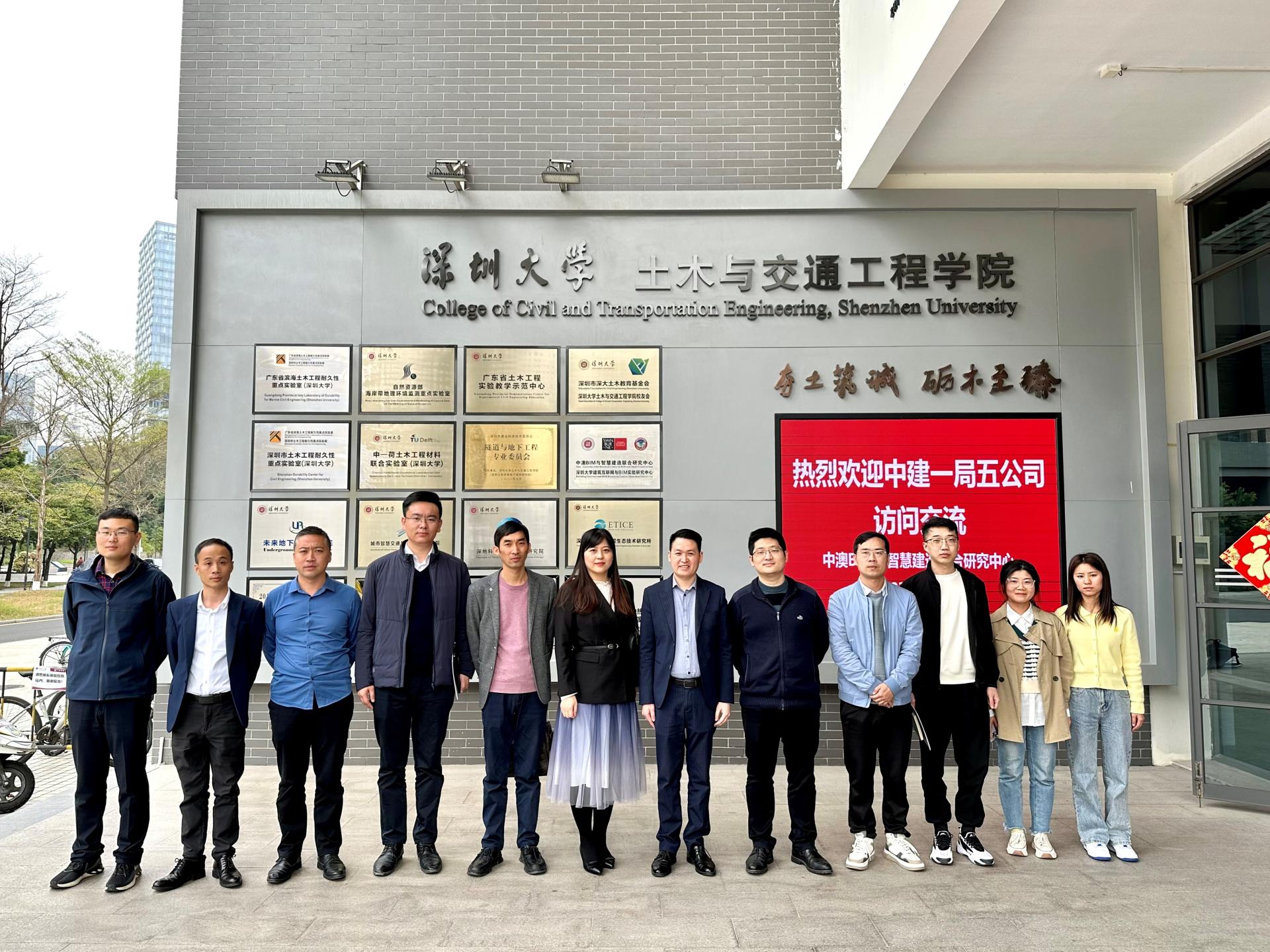 最后,中建一局五公司来访的各位领导与我中心接访人员合影留念。希望双方未来能在科研上有更多的交流与合作。