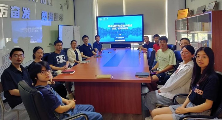 范成老师首先对冯驰老师的到来表示热烈欢迎,冯驰教授作了题为《被动辐射致冷技术概述—原理、应用与挑战》的学术报告。报告首先介绍了辐射制冷技术的原理,然后探讨了其结构和应用场景,重点介绍了辐射制冷技术在建筑科学方面的应用以及最近的研究进展,包括辐射制冷涂层性能的研究和辐射制冷对建筑长期能效的影响,最后总结了辐射制冷技术的未来研究方向。随后,与会师生和冯驰老师就学术报告内容开展了交流讨论。