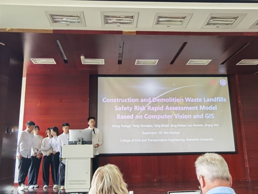 经过与清华大学、香港大学、哈尔滨工业大学、重庆大学、南京林业大学等多所高校竞争,我中心2022级研究生翁翔熠为组长的团队(作品:Construction and Demolition Waste Landfill Safety Risk Rapid Assessment Model Based on Computer Vision and GIS)在吴环宇老师的指导下脱颖而出,成功进入决赛。该团队在决赛中展现出了不畏强敌的勇气,冷静自信地进行了全程英文路演和答辩,他们充分展示了创新性的思维、严谨的逻辑和专业的知识素养,最终荣获二等奖。同时,我中心2022级研究生刘鑫为组长的团队(作品:Intelligent Detection of Geometric Quality of Prefabricated Components Based on BIM-LiDAR-UAV/UGV)、2021级本科生王梓轩为组长的团队(作品:基于自动导航和激光点云技术的竣工路面平整度检测研究)分别在谭毅和吴环宇、吴凌壹老师的指导下获得优胜奖。