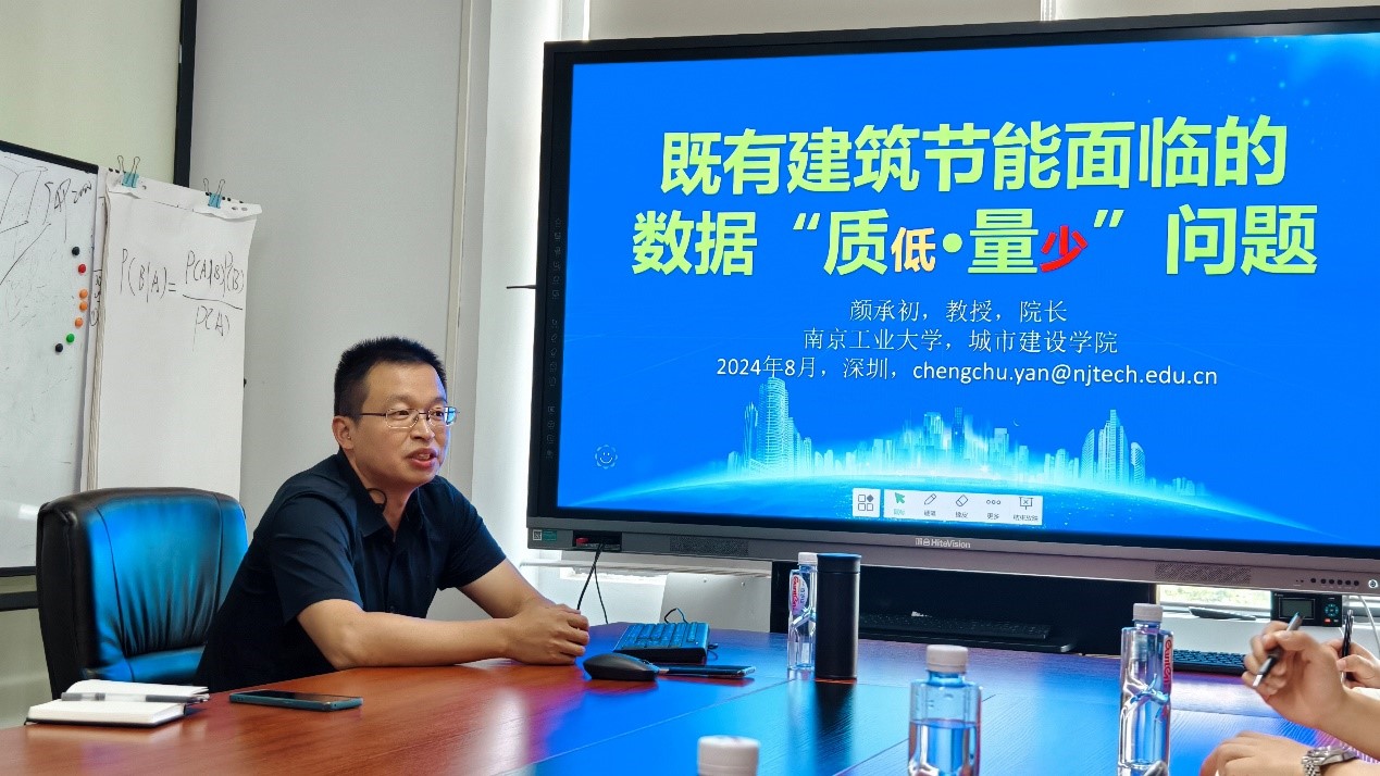 范成老师首先对颜承初教授的来访表示热烈欢迎,并介绍颜承初教授以及参会人员的学术背景和研究方向。随后,颜承初教授介绍了南京工业大学城市建设学院基本情况,并围绕既有建筑节能改造中的质与量问题开展学术报告。报告指出,大部分既有建筑能耗高、浪费大,且个体差异大、用能状况不清、浪费原因不明,给节能改造带来巨大挑战。颜承初教授对既有建筑节能改造过程中经常面临的数据量少和数据质量差两种典型问题进行分析和探讨,介绍了“基于电费单智能拆分的建筑能效快速评估技术”以及“高效机房多传感器互校准技术”,为既有建筑节能改造提供可靠、详实的数据基础及技术方案。随后,参会人员和颜承初教授就学术报告内容以及投稿期刊等开展了交流探讨,期待未来开展多项学术合作。